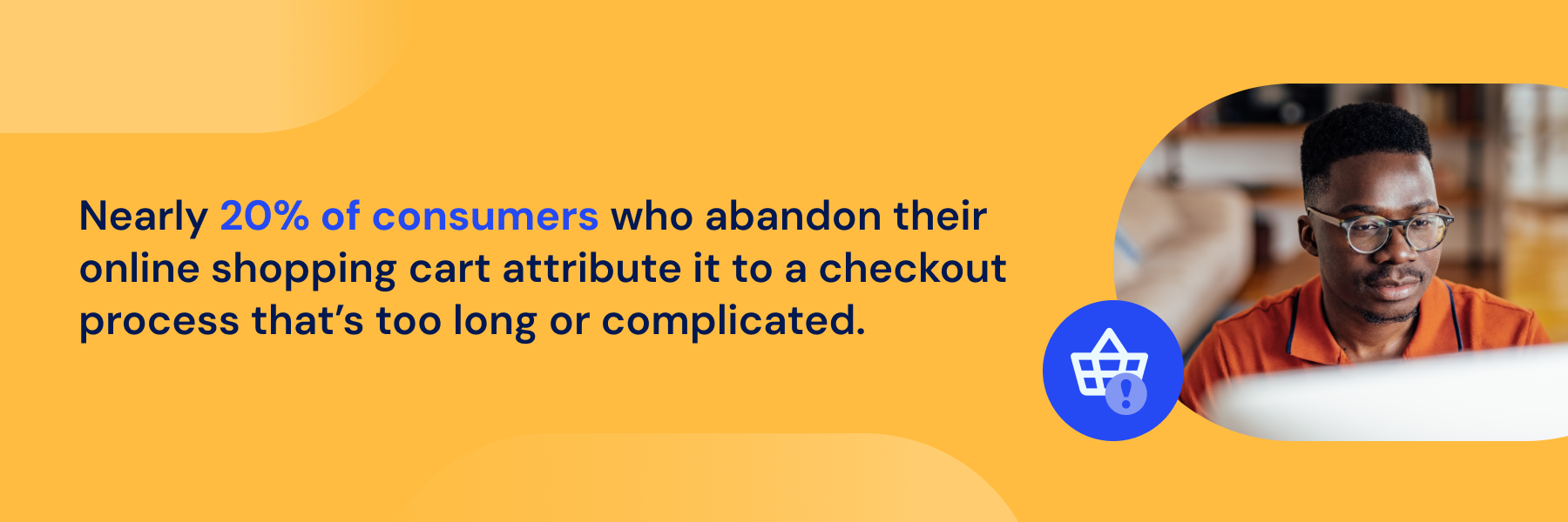 The Baymard Institute found that the rate of online shopping cart abandonment rate is more than 70%. And nearly 20% of consumers attribute that to a checkout process that’s too long or complicated.