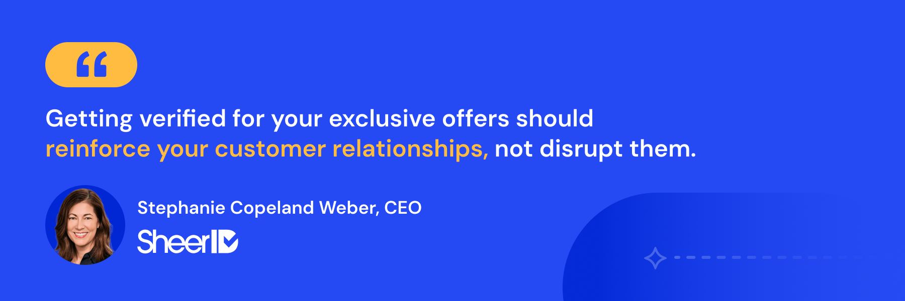 “Brand trust is fragile,” says Stephanie Copeland Weber, SheerID’s CEO. “A sudden redirect away from your website can feel jarring, even suspicious.”